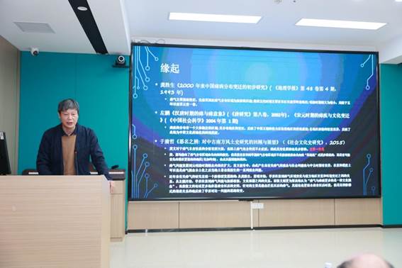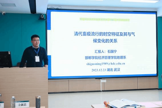 12月23日下午的大会主旨报告(二)下半场,由教育部长江学者特聘教授、中国地理学会历史地理专业委员会张伟然教授主持。教育部长江学者特聘教授、南开大学杰出教授兼历史学院院长余新忠教授以《明清运河古镇与名药铺的兴起——以塘栖镇为中心》为题,湖北师范大学中国史一级学科负责人、历史文化学院原院长张泰山教授以《民国时期政府对疫区的交通管制与隔离方式》为题,南昌师范学院旅游与经济管理学院李孜沫副教授以《清代卫生防疫的现代性省思》为题,华中科技大学人文学院秦崇文博士以《灾难叙事与禳灾治疗——对清末江南<潘公免灾救难宝卷>的文化考察》为题,山东女子学院旅游学院王晓伟副教授以《两千年来江南地区疫灾序列重建和变化特征》为题,华中师范大学城市与环境科学学院王莹莹助理研究员以《中国三千年疫灾信息集成数据库设计与实现》为题,邯郸学院经济管理学院石国宁博士以《清代畜疫流行的时空特征及其与气候变化的关系》为题做大会报告。
